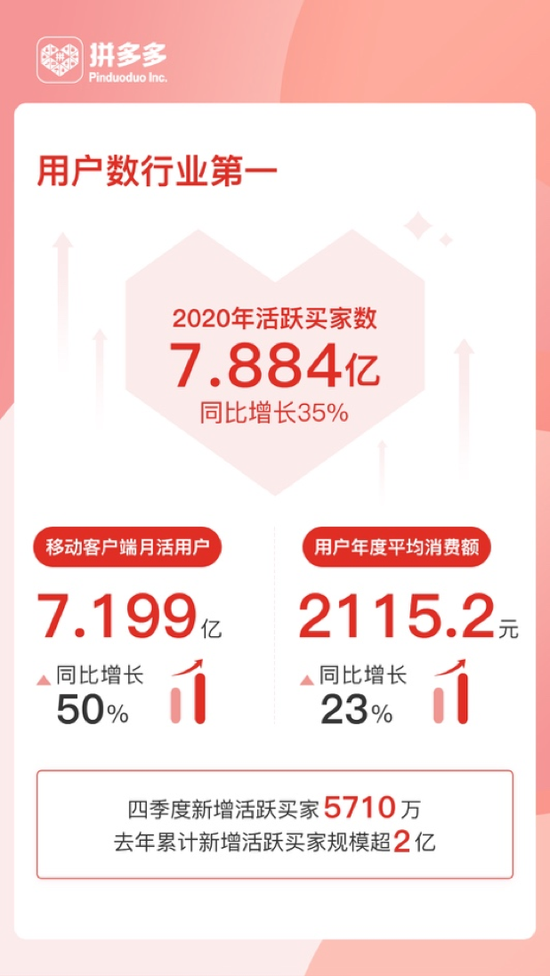 Updated on mar 24, 2021 拼多多. They claim to have 343m active buyers.