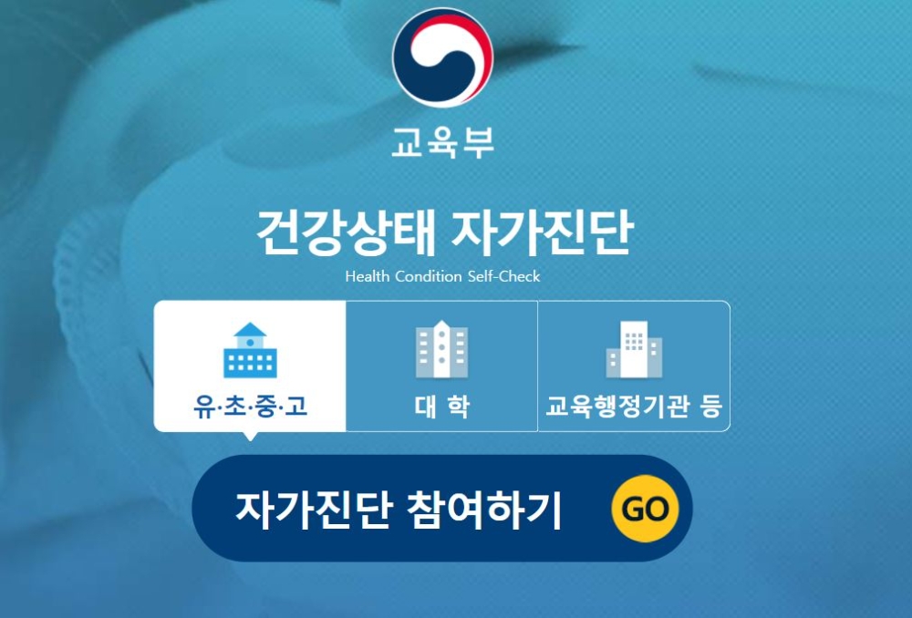 건강상태 자가진단 / 학생 건강상태 자가진단 시스템 변경 (교육부 어플설치) / 불법적인 접근이거나 허용되지 않은 특수문자가 포함되어 있을수.